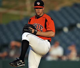 So why am I so excited to see this guy make his debut? Well, because this is just the beginning and it shows the depth of the O’s minor league system. Only the Rays can boast minor league pitching of this caliber, and I honestly think the O’s have passed them now with the progression of guys like Bergesen. Any Orioles fan (and soon to be any baseball fan) knows that the “calvary” Dave Trembley was really eluding to is what is known as the Big 3 in the form of Chris Tillman, Jake Arrieta, and Brian Matusz. These guys are 3 of the top 20 pitching prospects in all of baseball…and they’re all in the O’s system. At this point they’re spread throughout the O’s system really in reverse order of how ready they are for the majors. Tillman, aquired from the Mariners in the Bedard trade, is only 21 years old in AAA but dominated AA last year as a 19/20 year old. His command is holding him back now, but hey, he’s only 21. Jake Arrietta split his time last year between Fredrick and the Olympic team and Dave Trembley actually thinks he’ll be the best of the 3. At 23 years old, he could easily see the majors later this summer. And finally down at Class High-A Fredrick right now is last year’s first round draft pick (and best pitcher taken in the draft) Brian Matusz. The most polished of the 3, Matusz could easily hold his own in the majors right now. He already has four major league ready pitches, and has drawn comparisons to Cole Hamels. He should move up very fast through the system, but I think it’s more likely we’ll see him next year at the earliest.